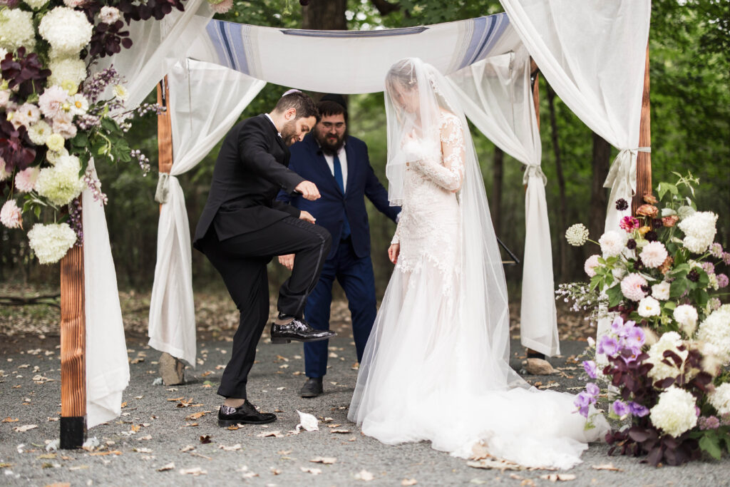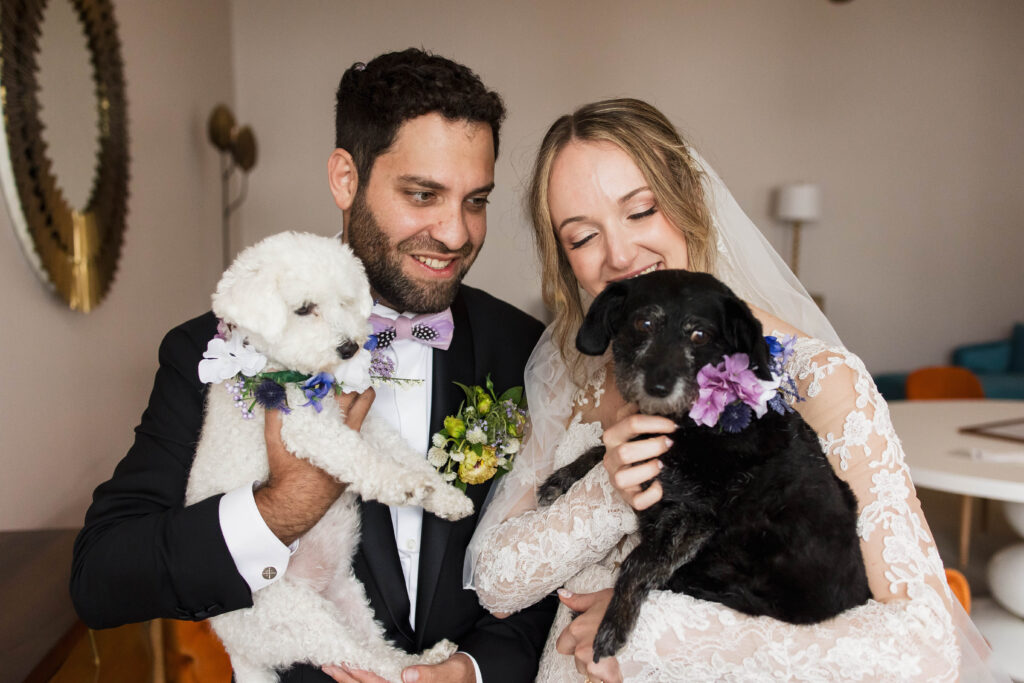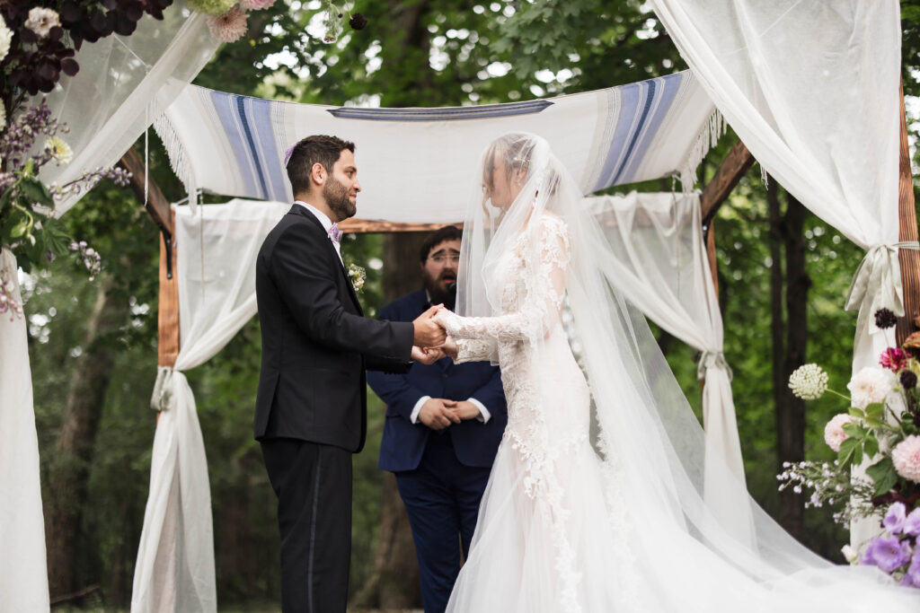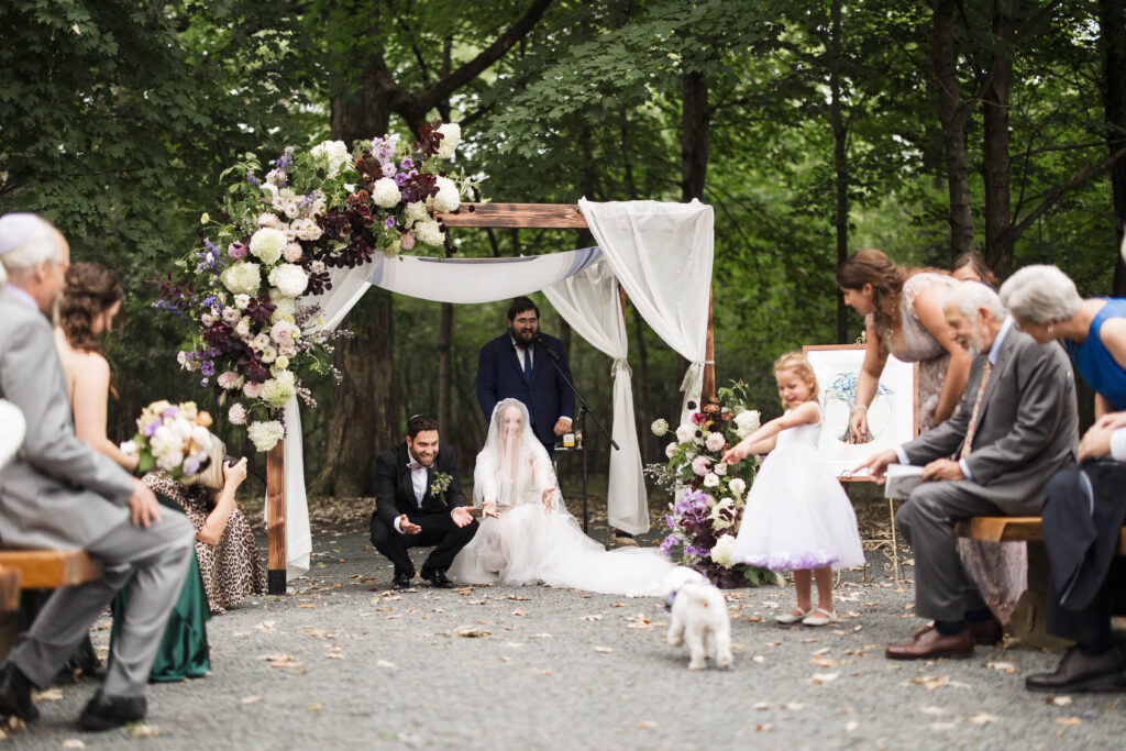 It was now time for the ceremony. The couple actually chose  Equestria West as their venue before it was even finished because they loved the ceremony site that much! Plus, Yoni actually built his own Chuppah (a ceremonial canopy used in traditional Jewish weddings), and they had an amazing tisch and bedeken. Their dogs also made a special appearance down the aisle!