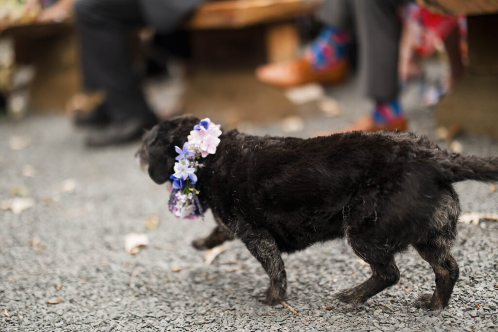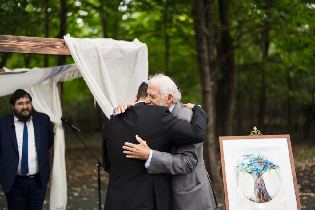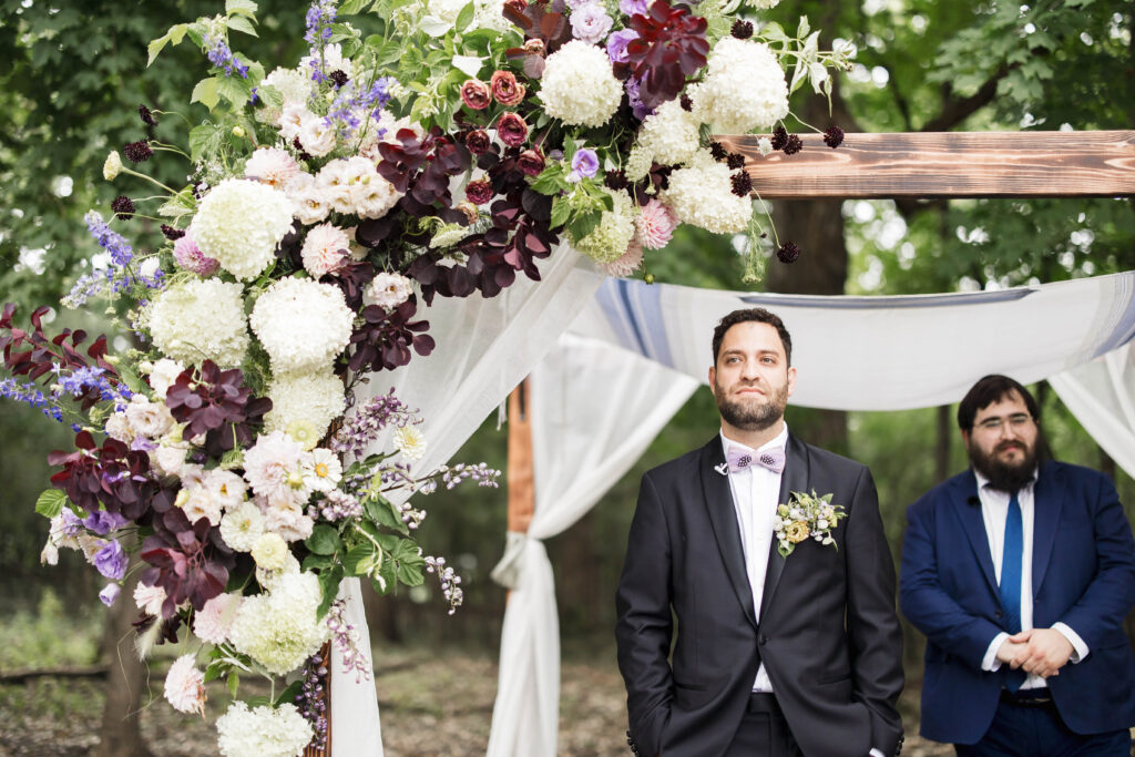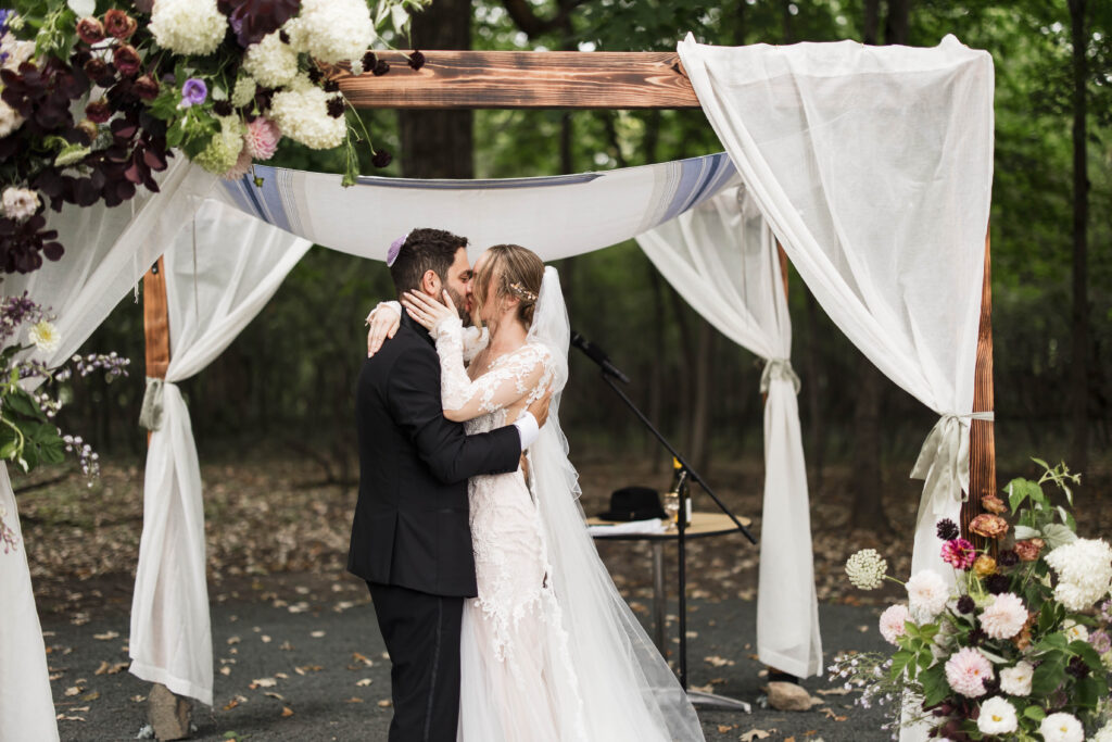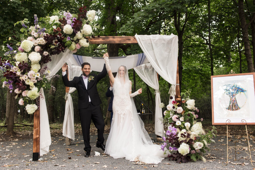 It was now time for the ceremony. The couple actually chose  Equestria West as their venue before it was even finished because they loved the ceremony site that much! Plus, Yoni actually built his own Chuppah (a ceremonial canopy used in traditional Jewish weddings), and they had an amazing tisch and bedeken. Their dogs also made a special appearance down the aisle!