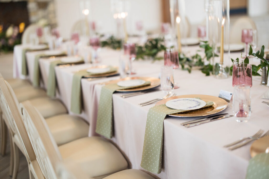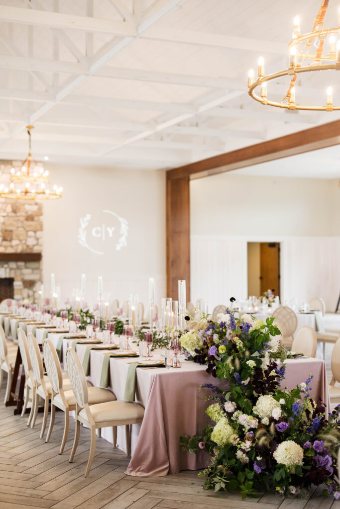 Now for the reception…wow! Chelsea wanted to go all out for the decor. The team at Linen Effects was able to make that happen. We went to Linen Effects with he couple and they picked out some of the beautiful and varied patterns and textures for their linens and tables. Combining those along with some of our decor and decor from Equestria West made for beautiful tables! Plus, Agape Floral absolutely executed the couple’s vision perfectly.