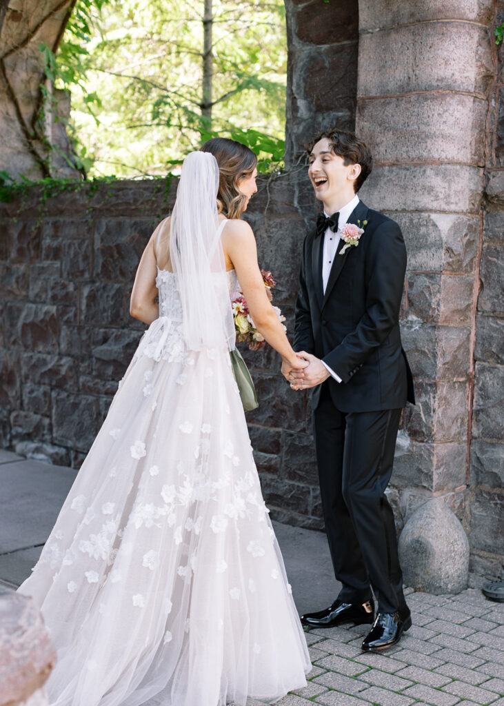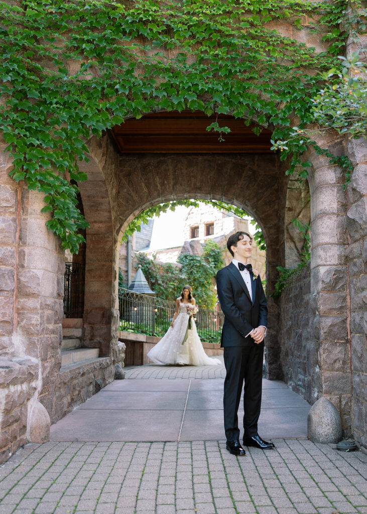 The ladies spent the morning getting ready with Primped while the guys just hung out in the Van Dusen Mansion. It was now time for the first look! We are so obsessed with the outdoor scenery spots that the mansion offers. It truly makes for the perfect background for pictures.