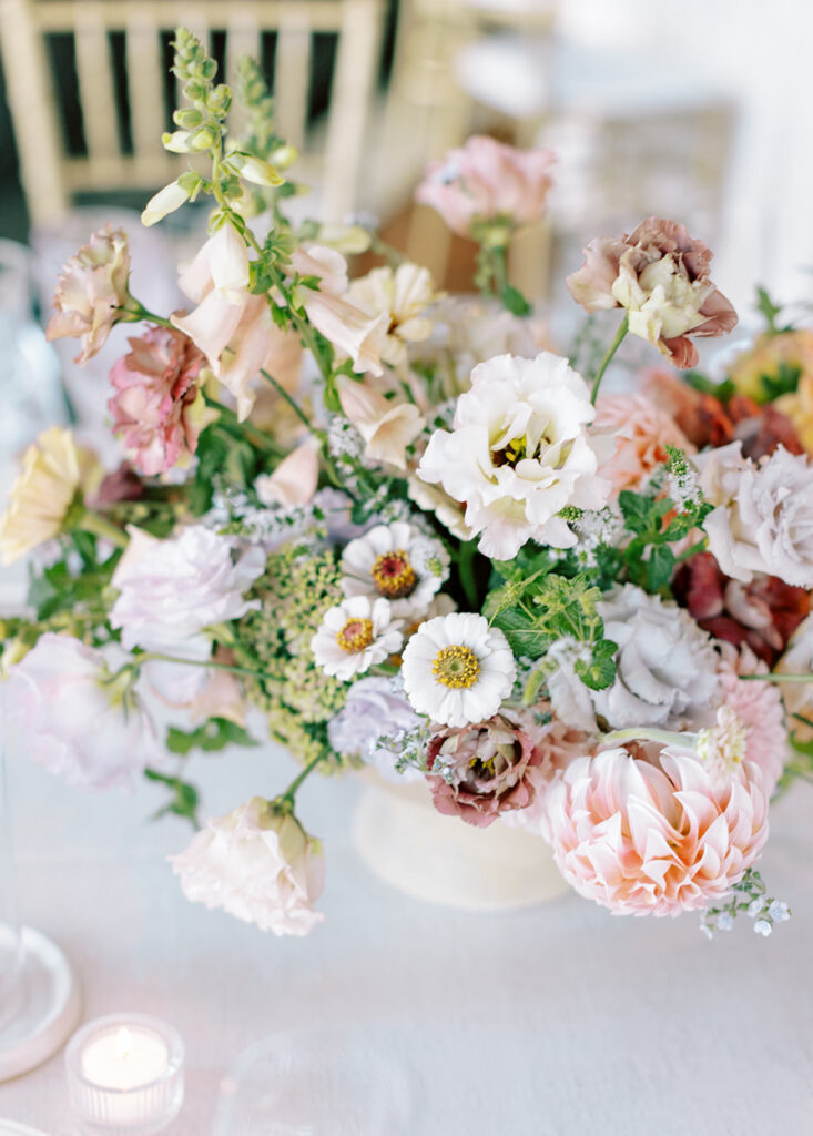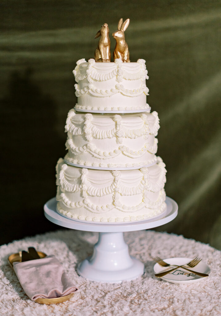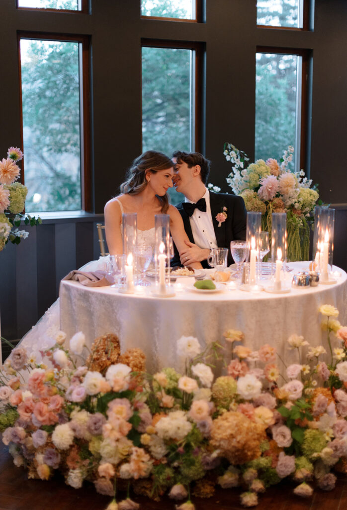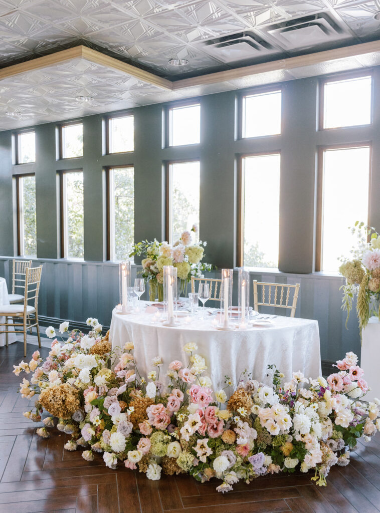 Once the ceremony was done, they headed back to  Van Dusen Mansion with Renee’s Linousines service! The reception was a perfect mix of classy and modern combined. Cosmos Floral pulled out all the stops to make Angela’s floral dreams come to life. The tables were mixed with decor rented from us and Apres Event Decor & Tent Rental. And of course, had to have desserts from Buttercream Cakes & Desserts before the dancing started. Their vintage cake with the bunny cake topper was a moment!